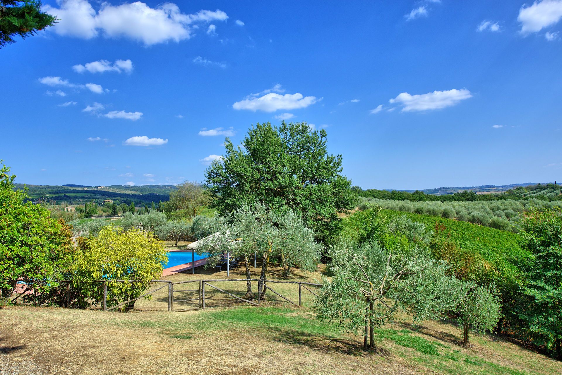 הוילה העצמאית עם הבריכה הפרטית נמצאת ליד קסטלינה שבלב אזור הקיאנטי קלאסיקו בטוסקנה. הוילה שוכנת בבית אחוזה כפרי מחודש, ששופץ תוך שמירה על המאפיינים האדריכליים המקוריים, הריהוט העתיק ועל הקסם הישן. את הבית מקיפים 220 דונמים של כרמים פורחים ומטעי זיתים, מהם מיוצרים יינות ומגוון שמני זית משובחים הזמינים לרכישה. בגן הגדול של הוילה תמצאו בריכת שחייה מקסימה ולצידה מדשאה רחבת ידיים, מיטות שיזוף ופינת אוכל תחת פרגולה. בוילה המרכזית שני חדרי שינה ושלושה חדרי רחצה לאירוח של עד שישה אורחים – משפחה או קבוצת חברים ימצאו במקום הזה שקט ושלווה אמיתית. בבית גם מטבח מאובזר וסלון גדול וכפרי. במבנה השני המרוחק 150 מטר מהמבנה המרכזי יש דירה שבה עוד שני חדרי שינה ושני חדרי אמבטיה ושירותים. לפי בקשה, תוכלו להצטרף לסיורי יין, המובלים על ידי בעלי הוילה, במרתפי היינות וליהנות מטעימות של היינות המיוחדים. המיקום האידיאלי של הוילה מאפשר גישה לערים ולעיירות היפים בטוסקנה, כמו סיאנה, סן ג'מיניאנו ופירנצה, ולכפרים מלאי הקסם של אזור הקיאנטי קלאסיקו.