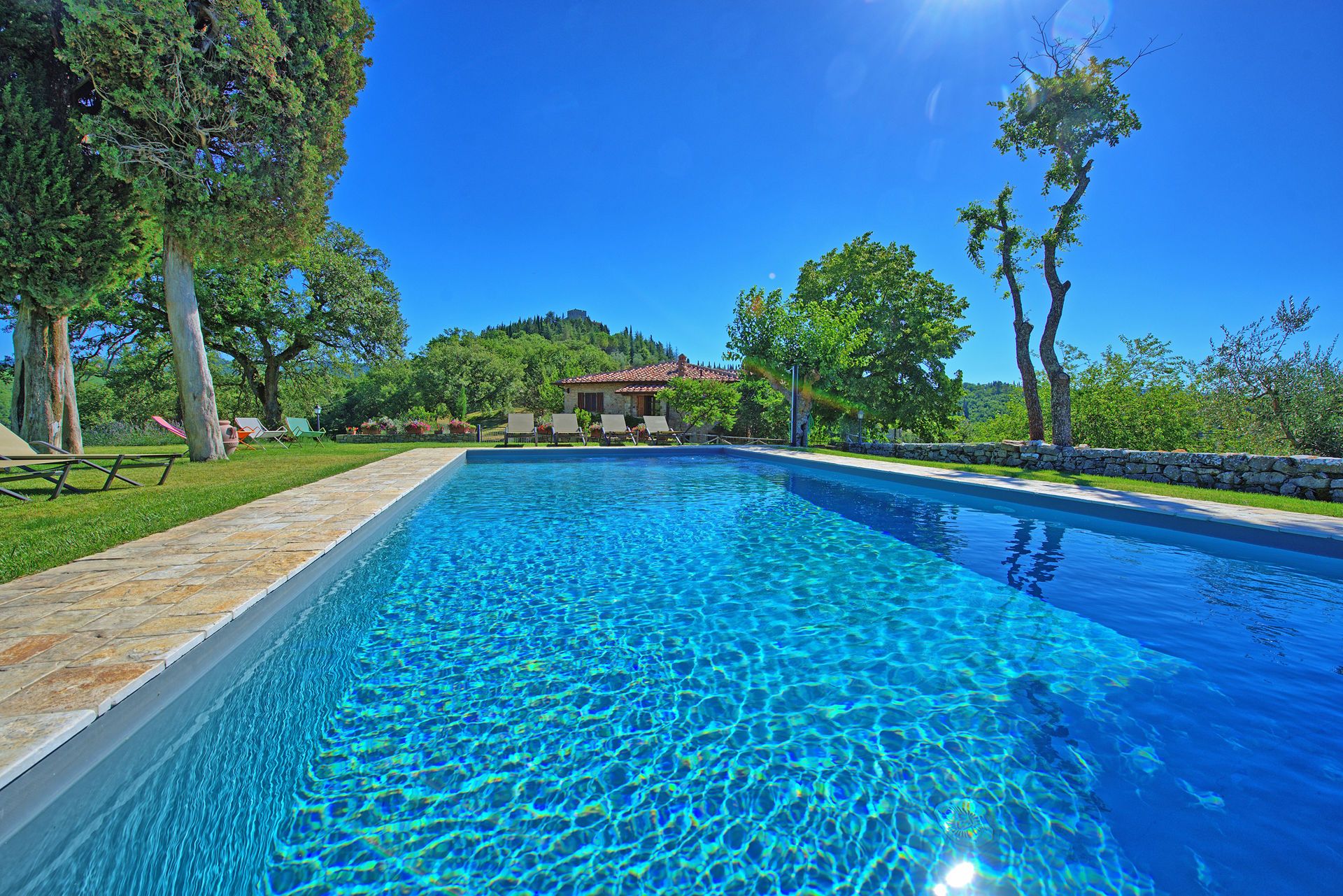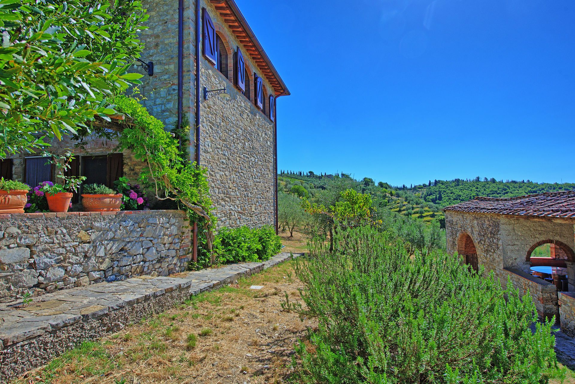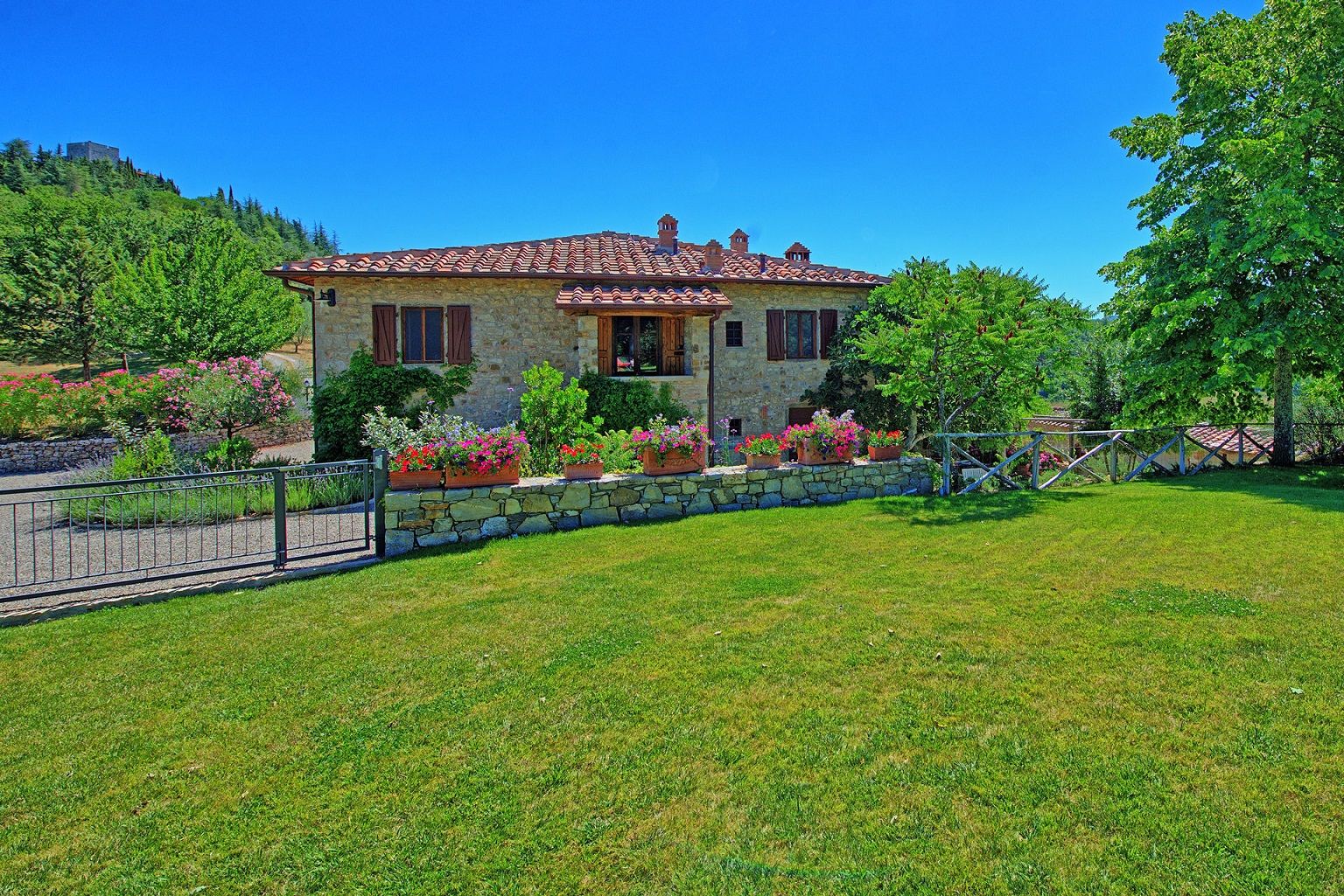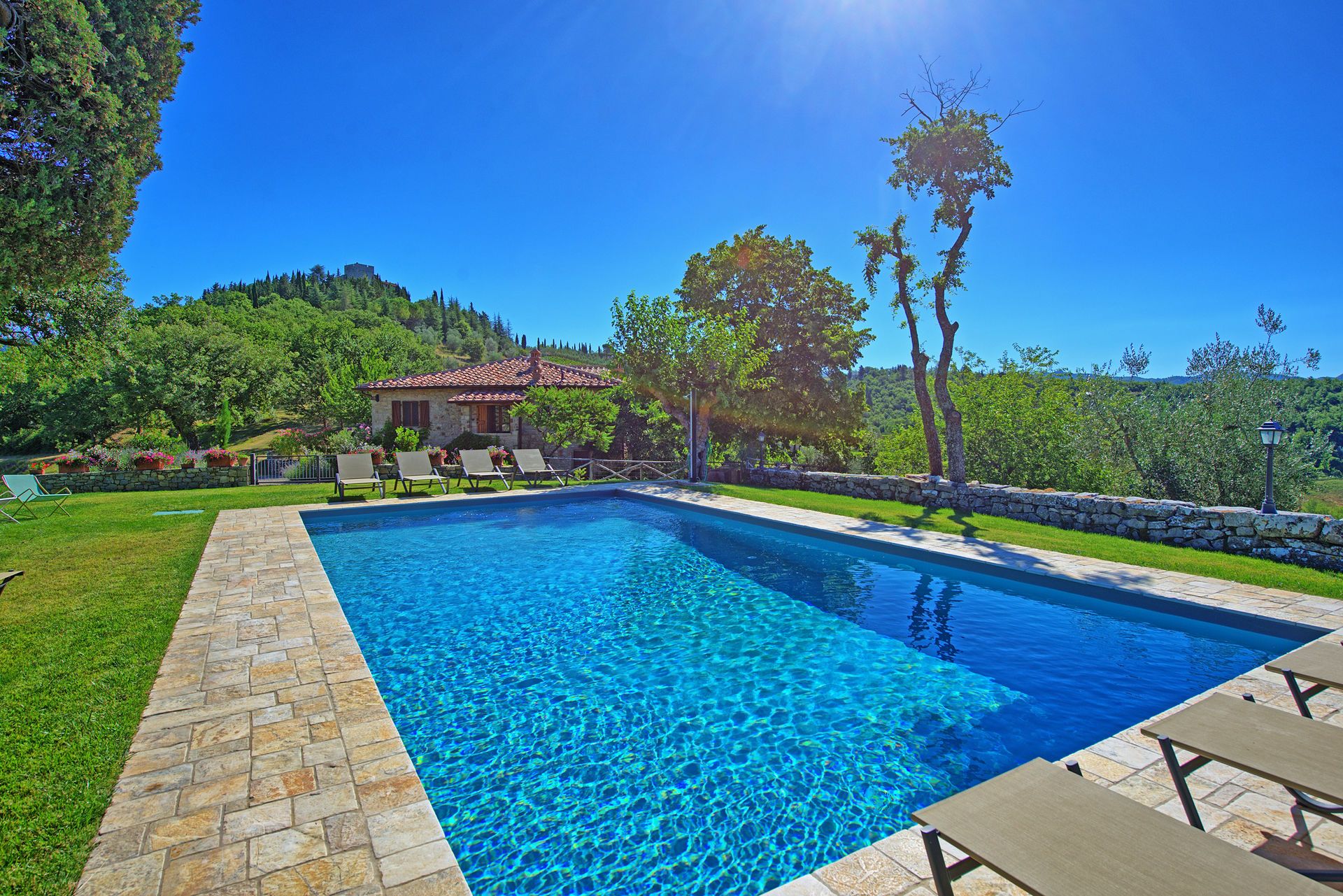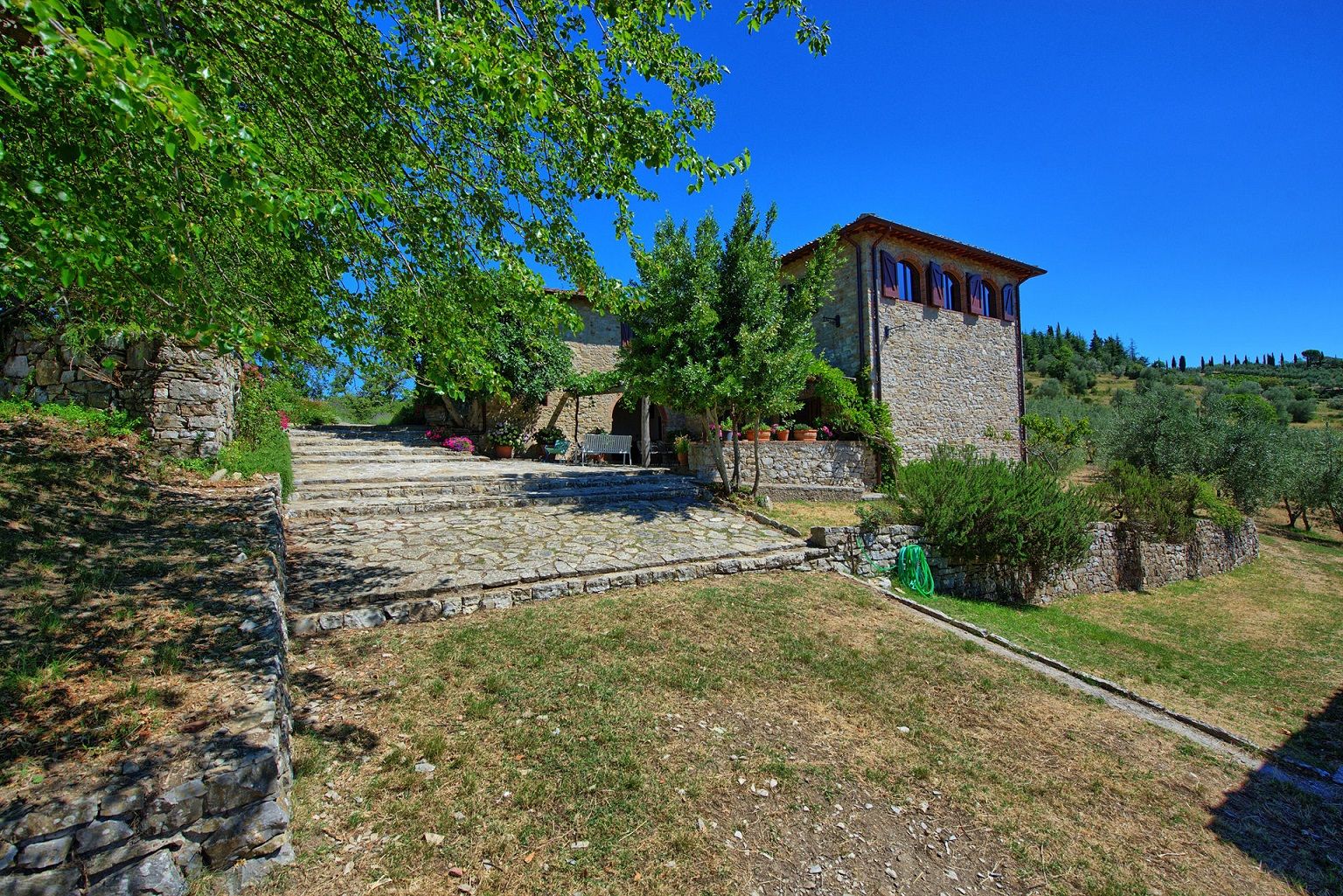 הוילה האלגנטית עם הבריכה הפרטית נמצאת בורטינה, כפר היסטורי מקסים בקיאנטי שבטוסקנה. הוילה ממוקמת במרחק דקה הליכה ממרכז הכפר, בעוד העיירה הגדולה הקרובה ביותר היא גאיולה, בה חנויות, מסעדות, בתי קפה וכל השירותים העירוניים, והיא במרחק דקות נסיעה בודדות. בקומת הכניסה אל הוילה תמצאו חדר מגורים פתוח הכולל סלון, מטבח מאובזר ואזור אוכל עם שולחן לעשרה סועדים. דלתות פטיו נפתחות ישר אל פינת אוכל חיצונית מקסימה ומוצלת. שלוש מדרגות למעלה ממפלס הכניסה נמצאים חדר הכביסה וחדר שירותים. גרם מדרגות מוביל אל הקומה השנייה, בה יעמדו לרשותכם אזור מגורים רחב ידיים עם אח, פינת ישיבה, מערכת מוזיקה וחלונות המשקיפים אל גבעות הקיאנטי קלאסיקו. בקומה זו גם חמישה חדרי שינה ממוזגים וזוגיים (ניתן להפריד לשתי מיטות יחיד) עם חדר רחצה צמוד לכל חדר. את הבית הגדול מקיף גן נפלא, שופע בצמחייה, ערוגות, עצים ומדשאות. בלב הגן תחכה לכם בריכת שחייה פתוחה וגדולה מוקפת מיטות שיזוף. במרחק של כעשרים דקות תגיעו לקאסטלינה ולסיינה, בעוד סן ג'ימיניאנו, ארצו ופירנצה נמצאות במרחק של כשעה נסיעה.