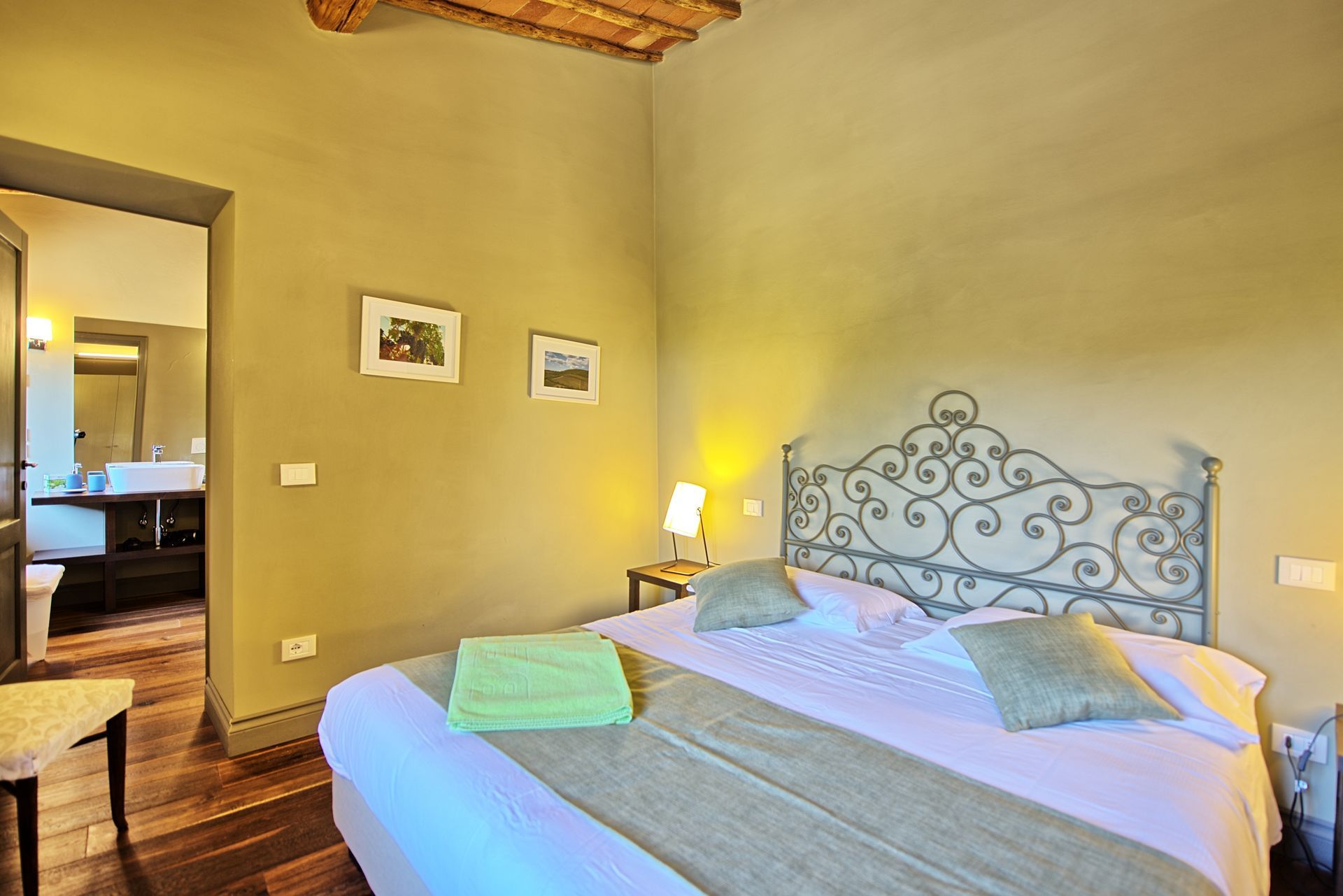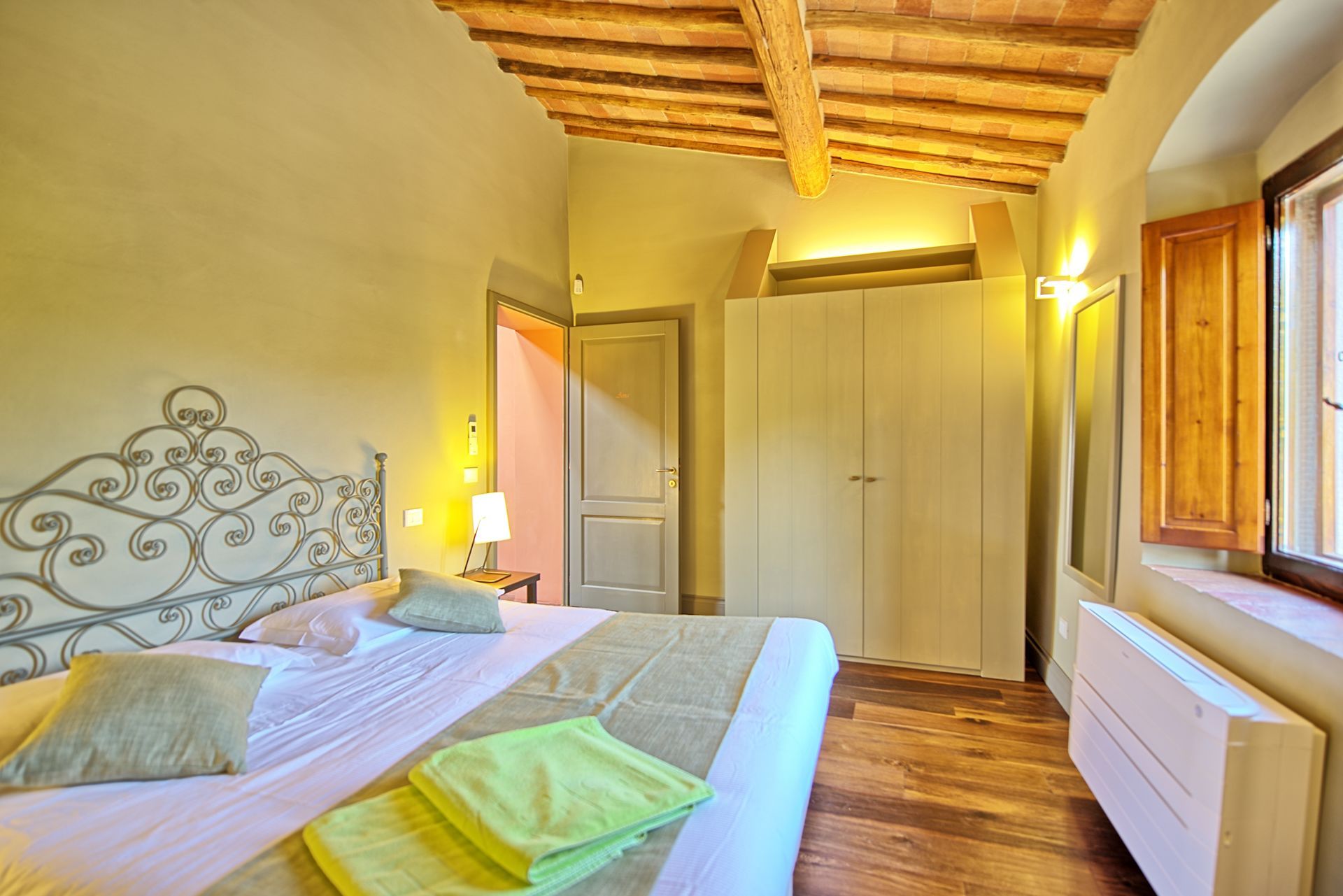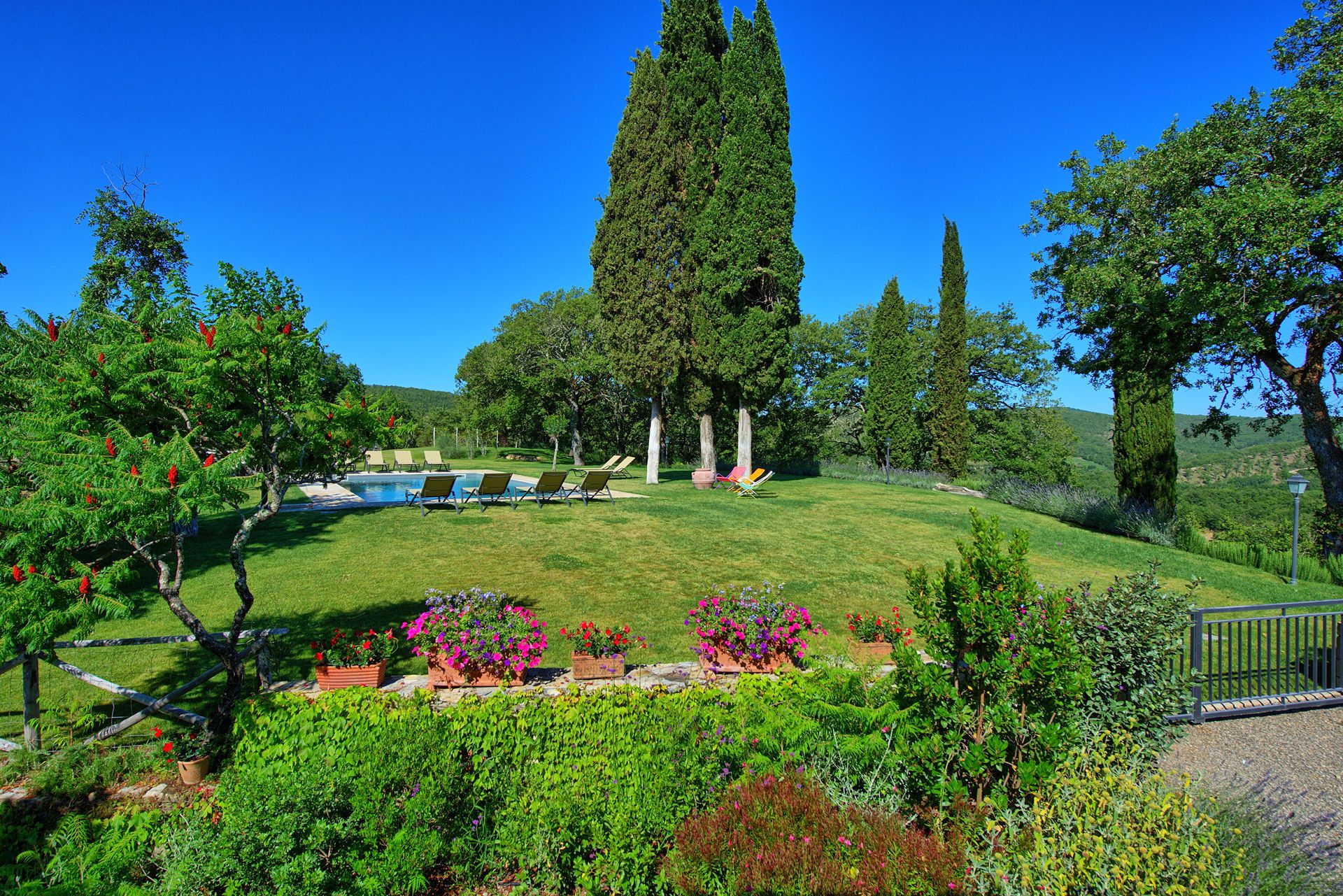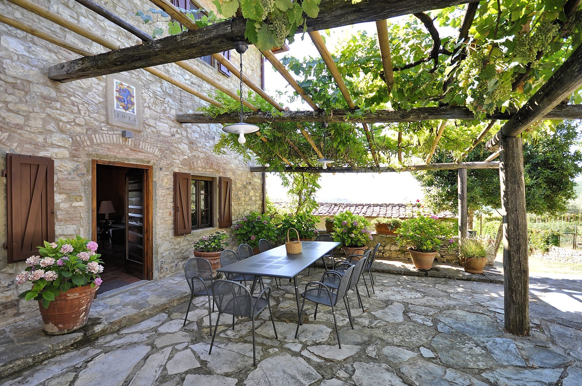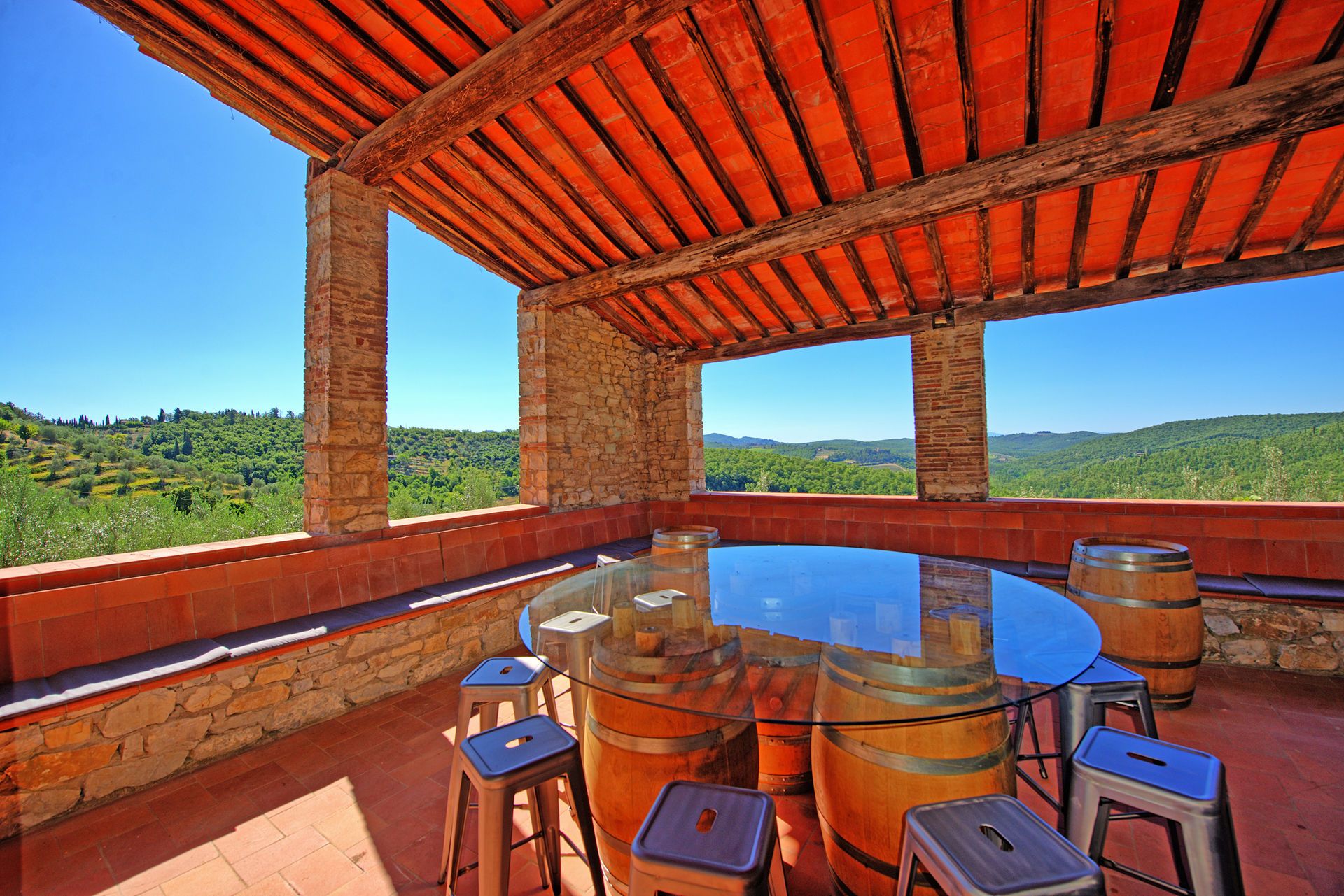 הוילה האלגנטית עם הבריכה הפרטית נמצאת בורטינה, כפר היסטורי מקסים בקיאנטי שבטוסקנה. הוילה ממוקמת במרחק דקה הליכה ממרכז הכפר, בעוד העיירה הגדולה הקרובה ביותר היא גאיולה, בה חנויות, מסעדות, בתי קפה וכל השירותים העירוניים, והיא במרחק דקות נסיעה בודדות. בקומת הכניסה אל הוילה תמצאו חדר מגורים פתוח הכולל סלון, מטבח מאובזר ואזור אוכל עם שולחן לעשרה סועדים. דלתות פטיו נפתחות ישר אל פינת אוכל חיצונית מקסימה ומוצלת. שלוש מדרגות למעלה ממפלס הכניסה נמצאים חדר הכביסה וחדר שירותים. גרם מדרגות מוביל אל הקומה השנייה, בה יעמדו לרשותכם אזור מגורים רחב ידיים עם אח, פינת ישיבה, מערכת מוזיקה וחלונות המשקיפים אל גבעות הקיאנטי קלאסיקו. בקומה זו גם חמישה חדרי שינה ממוזגים וזוגיים (ניתן להפריד לשתי מיטות יחיד) עם חדר רחצה צמוד לכל חדר. את הבית הגדול מקיף גן נפלא, שופע בצמחייה, ערוגות, עצים ומדשאות. בלב הגן תחכה לכם בריכת שחייה פתוחה וגדולה מוקפת מיטות שיזוף. במרחק של כעשרים דקות תגיעו לקאסטלינה ולסיינה, בעוד סן ג'ימיניאנו, ארצו ופירנצה נמצאות במרחק של כשעה נסיעה.