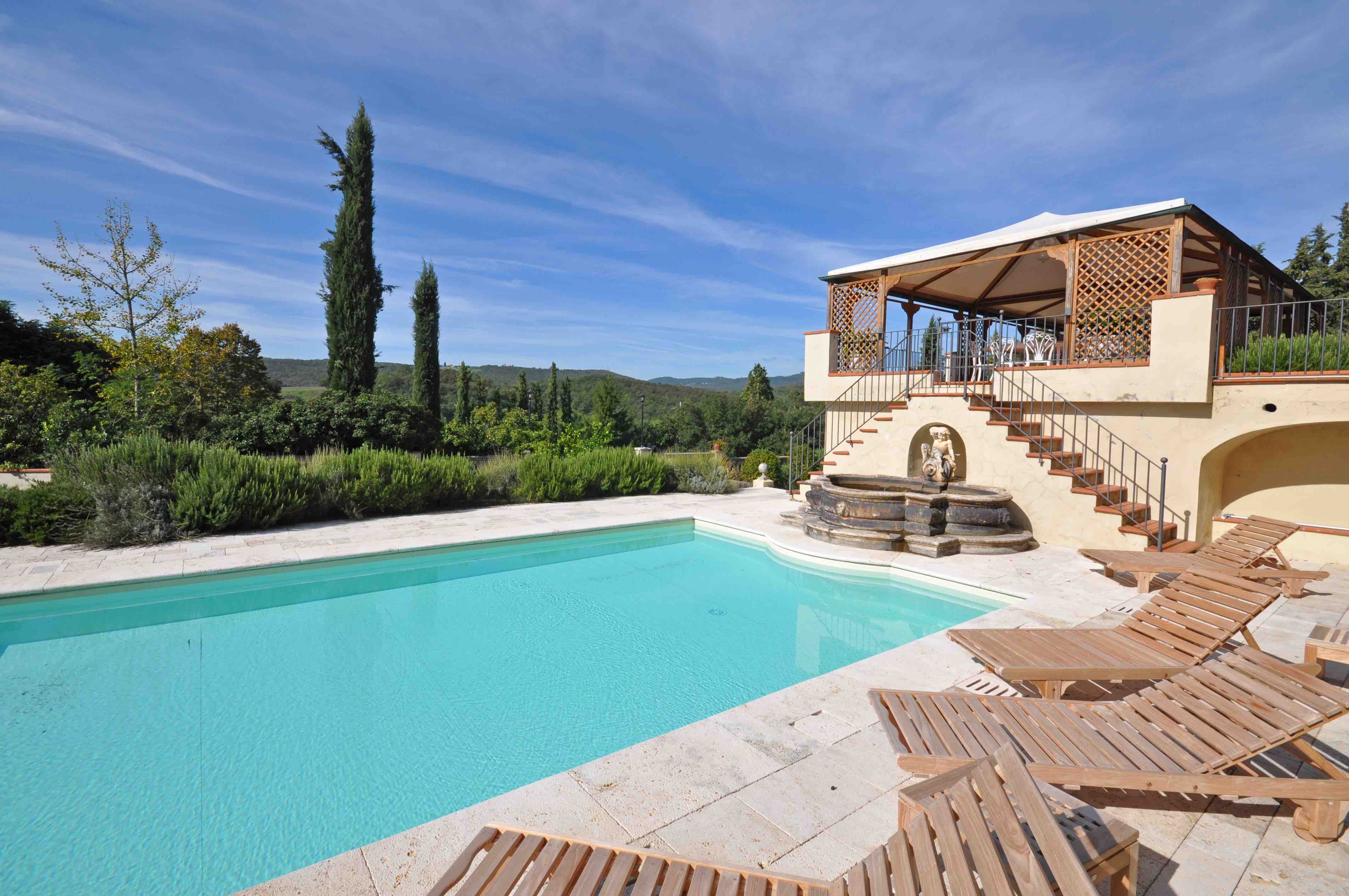וילה נהדרת עצמאית הנמצאת בלב הקיאנטי קלאסיקו, ליבה הפועם והירוק של טוסקנה, והיא חלק מאחוזה שיש בה 4 דירות המרוחקות מהוילה עצמה. הוילה נמצאת לא רחוק מהכפר BUCINE שבקיאנטי קלאסיקו, 4 ק"מ מכפר בשם AMBRA שבו חנויות ובתי קפה. בחוץ שטח פרטי עצום עם בריכת שחיה פרטית ומגרש טניס שהוא בלבד משותף לוילה ולדירות. גודל הבית 1000 מ"ר ויש בו קומת קרקע וקומה עליונה. בקומת הקרקע סלון גדול ומטבח מקסים וגדול עם יציאה לטראסה עם נוף (המטבח במפלס המצוי 5 מדרגות מעל הסלון). בקומה הראשונה 6 חדרי שינה, כולם עם חדר אמבטיה ושירותים צמודים, חלקם עם חדר ארונות. במבנה נפרד עוד חדר שינה עם אמבטיה ושירותים צמודים. סך הכל 7 חדרי שינה ו- 7 חדרי אמבטיה ושירותים. וילה מצוינת לשהות של מספר משפחות חברים או של משפחה גדולה מורחבת.