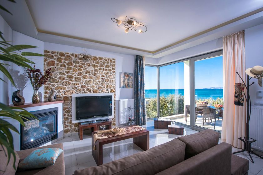 וילה אלגנטית הצופה לים, עם חמישה חדרי שינה, חצר מפנקת ונוף נפלא, דקות הליכה מחוף קאטו גובס ומספר טברנות מסורתיות שבמרכז הכפר. העיר המרכזית הרקליון נמצאת במרחק של כ-20 דקות נסיעה. הוילה מחולקת לשלושה מפלסים, כולם מעוצבים ומעוטרים בחפצי אמנות ייחודיים. בקומה הכניסה סלון גדול עם אח ונוף לים, מטבח מאובזר לגמרי ופינת אוכל. בקומה זו גם חדר שינה עם מיטת-ספה (החדר מתאים לילדים). בקומה הראשונה חדר שינה מאסטר להורים, חדר שינה זוגי וחדר שינה עם מיטת קומתיים. בקומה זו גם חדר אמבטיה, שירותים וטרסה מרוהטת עם נוף לים. במפלס שמתחת לקומת הכניסה חדר כושר קטן וחדר משחקים. בקומה זו גם חדר שינה זוגי וחדר אמבטיה. בחוץ תיהנו מפינת אוכל חיצונית הצופה לחוף Blue Flag, שנמצא ממש למרגלות הוילה. קאטו גובס היא עיירה קטנה, בה תמצאו טברנות, בתי קפה, ברים וחנויות, לצד מגוון גדול של חופים מסודרים ונגישים.